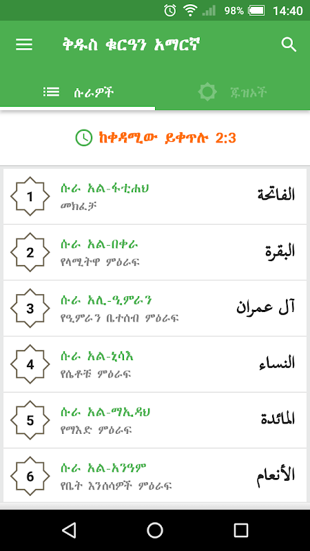 Deze app (Heilige Koran Amhaars) is een complete Android digitale Koran in het Amhaars.