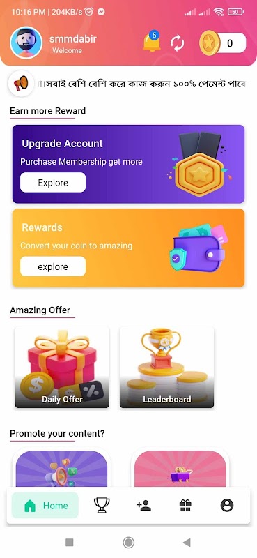 Home Job Reward App-aanbiedingen is een beste app voor gebruikers die een beloning willen verdienen. er zijn veel opties om een beloning te verdienen, de gebruiker kan geld verdienen via de download-app + vriend uitnodigen, ook verdienen met video bekijken, eenvoudige app mooie interface verdienen.