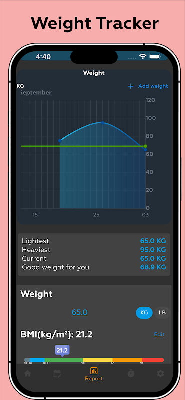 * Het diagram volgt uw gewichtstrends