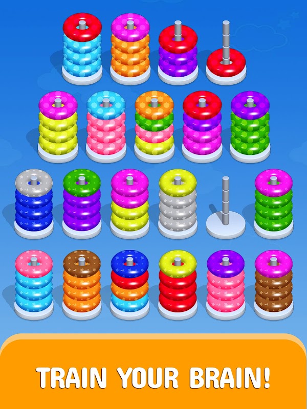 Hoop Stack Sort - Color Sort Puzzle is een verslavend en oneindig puzzelspel voor het sorteren van kleuren. Los de stapelstapelpuzzel op door kleurrijke hoepels te sorteren. Denk, strategiseer en voorspel de zet om je hersenen te trainen!