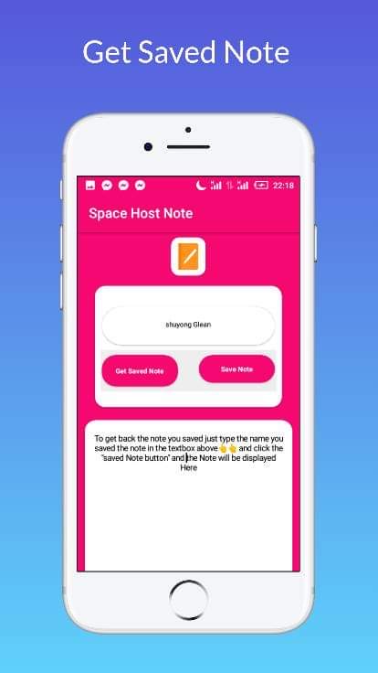 This Is is a simple note saver app that will help you to save all your notes just with one click. It uploads all your notes to tinydb and stores it there forever. You can use the app at any moment both online and offline. The app is free to use and it has no effects on the users you see your notes using the save button and get the note using the get button. The first textbox is where you will put your note name to get the note or save it and the second textbox below is where you will put your note to save or see the note you saved when you click the get button. The note will remain in tinydb unless you update the note with the same note. It will save the note for once and you will get it using the very name you saved it with. It contains startapp ads. It's free to use no premium sections