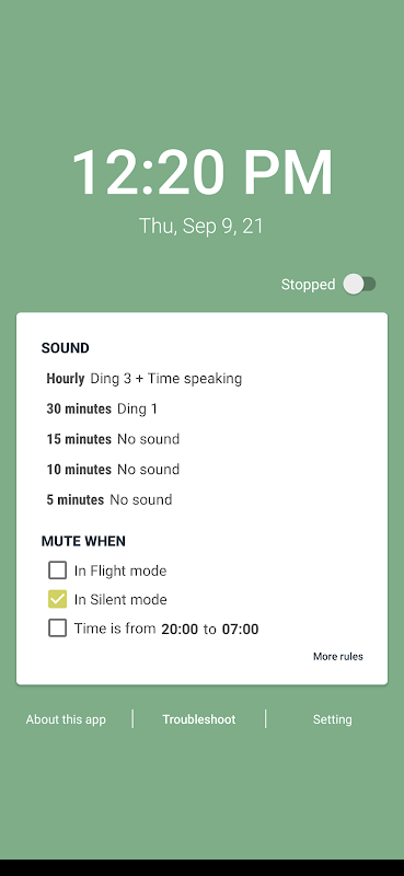 Mindfulness Chime is een uursignaal-app (ook bekend als een pratende klok, sprekende klok, uuralarm, uurlijkse piep, uurlijkse herinnering, uursignaal of gewoon een blip blip) waarmee u de tijd beter kunt volgen met 5 minuten, 10 minuten, kwartier -herinneringsgeluiden per uur, half uur en elk uur.
