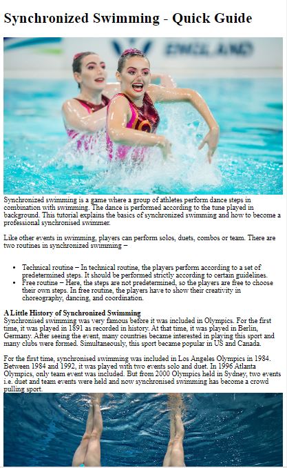Mis je kans niet om een bekwame gesynchroniseerde zwemmer te worden. Download nu ""How to Do Synchronized Swimming"" en ontgrendel de geheimen voor het beheersen van deze boeiende watersport. Omarm de uitdaging, beheersen de technieken en laat je gesynchroniseerde zwemkunstenaarschap zien als nooit tevoren. Begin vandaag en laat uw gesynchroniseerde zwemreis beginnen!"