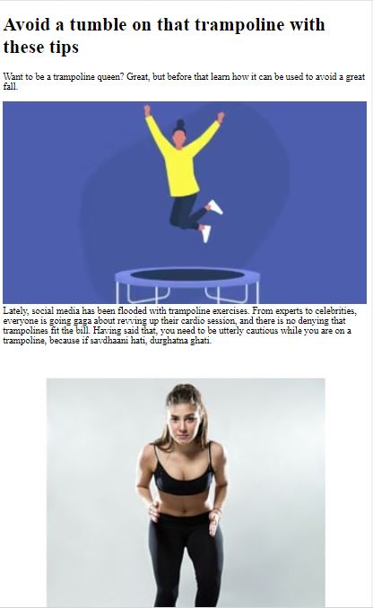 Ontdek een verscheidenheid aan trampolinetrainingen, oefeningen en routines die zijn ontworpen om uw cardiovasculaire fitness aan te vechten, uw evenwicht te verbeteren en uw spieren te versterken. Van eenvoudige sprongen tot geavanceerde flips, kernoefeningen tot intervallen met hoge intensiteit, onze vakkundig samengestelde tutorials zullen u stap voor stap begeleiden naar het bereiken van een leuke en effectieve trampolinetraining.