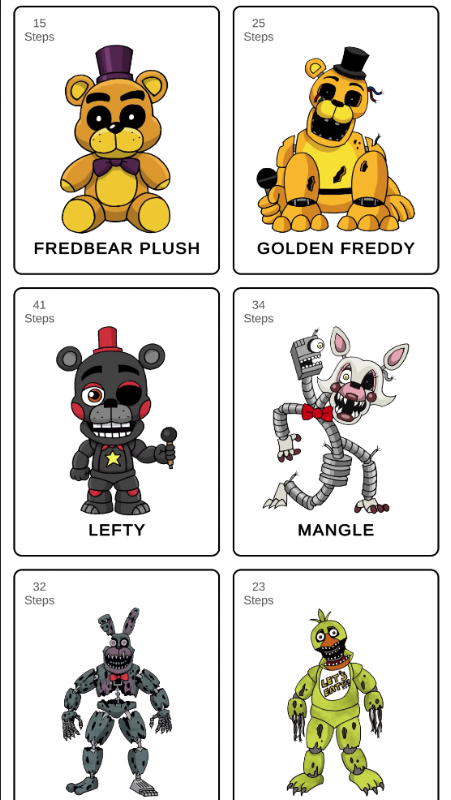 Door te tekenen met behulp van de How to draw FNaF tutorial-app, kun je niet alleen ontspannen, maar ook je vaardigheden verbeteren. Tekenen! Voel je een artiest!