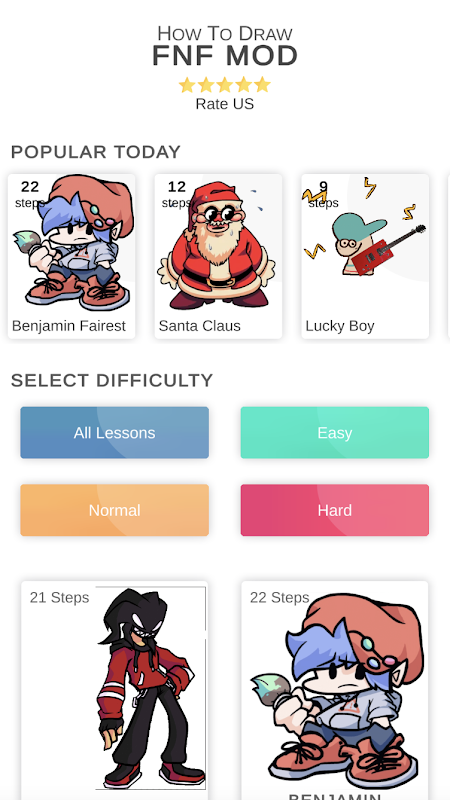 Vergeet niet dat tekenlessen de verbeelding en het geheugen helpen verbeteren. Bovendien is het een geweldige manier om te ontsnappen aan alledaagse problemen. Dus download "Hoe FNF mod Characters te tekenen" sneller.
