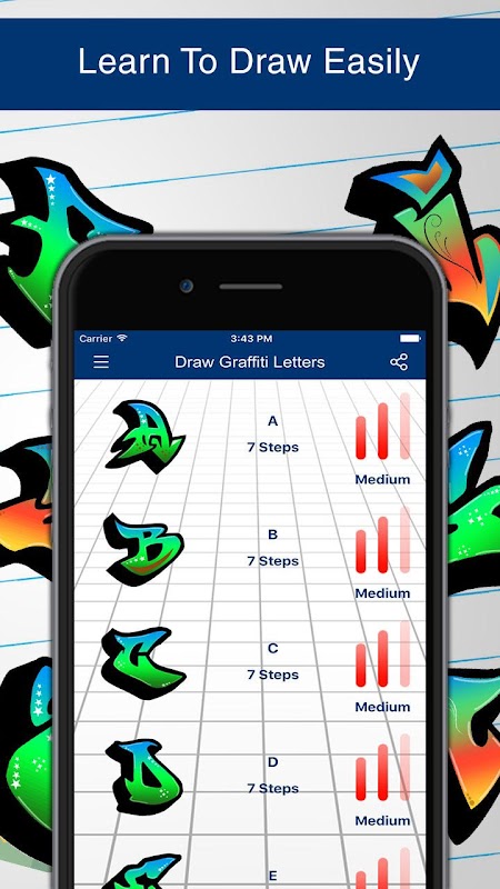 How to Draw Graffiti Letters is an app that teaches you how to Draw Graffiti Letters step by step educational application for the kids.