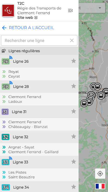 - Live locatie van bussen en touringcars, om hun voortgang in realtime te volgen.
