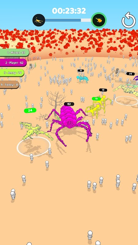 Maak jezelf groter door elke kleine man die op je pad komt te verzamelen, alleen dan kun je MACHTIGE GROTE MENSELIJKE MONSTERS verslaan!