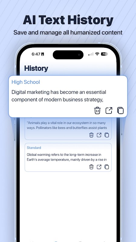 • Geschiedenisfunctie: Krijg eenvoudig toegang tot uw eerder gehumaniseerde teksten.