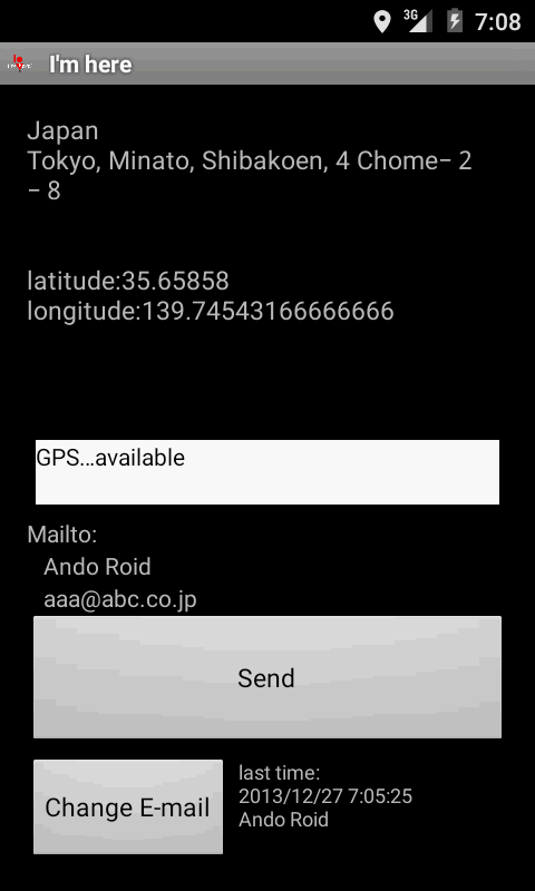 De operatie eindigt met (1) opstarten, (2) acquisitie van locatiegegevens (automatisch) en (3) het verzenden van een e-mail.