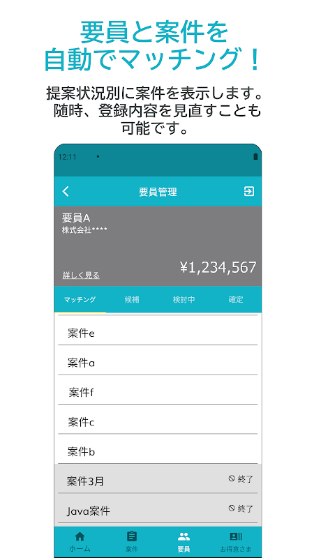 → より詳細に案件・要員の情報が確認できるため、マッチング結果の検討に役立ちます。