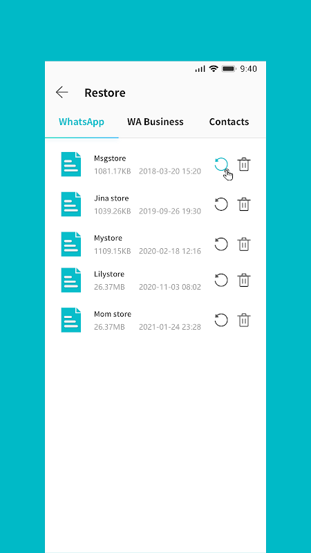 * Backup phone contacts and WhatsApp contacts to standard VCF files;