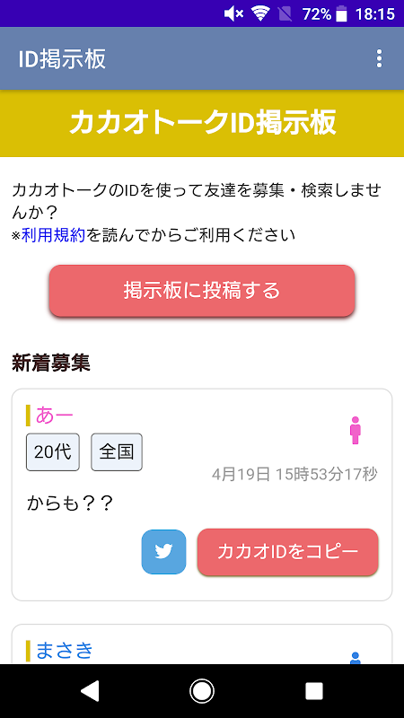 ID掲示板で友達追加!ヒマつぶしに使えてフレンドを探せるタイムライン検索! 1.2