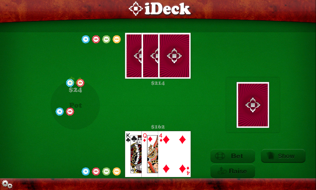 iDeck is a 3 card game, ideal for one player. Ranking of cards is form high to low as: