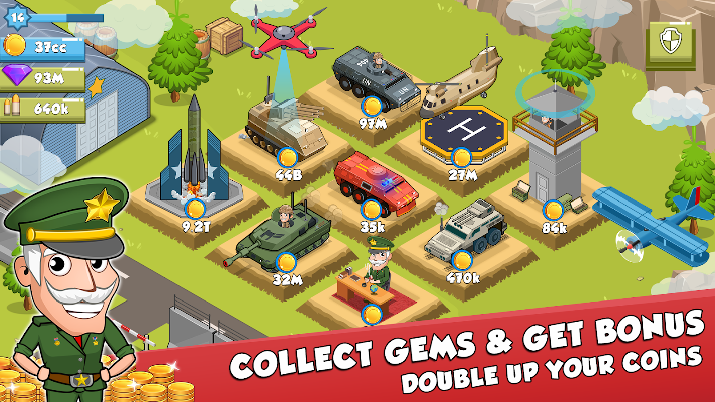Idle Army Tycoon is een legerheld en leger-tappergame waarin je op munten klikt en upgradet door te tikken. Legergevecht door militaire clickers is een 'idle economy booster game' waarin we soldaten van het leger rangschikken en munten rangschikken en vervolgens miljoenen, miljarden, quintillions en octodecillions verdienen. Het klikken op oorlog is een uniek koninkrijks aanvalsspel van de lading leger voor troepen tikken. Je gaat munten verdienen en ontgrendelt dan het commando en zal landaanvallen doen. Krachtenstaking in het spel van inactieve militairen is moderne militaire commando-training. Om een inactieve squadron te worden en de tycoon voor inactieve gevechten te genieten van de aanval op het wereld oorlogsland. Ontgrendel alle landen als ontmoetingsmagnaat en vergroot je niet-werkende economie in miljoenen, miljarden, kwintillons en achttallen. Na het ophalen van de munten worden militaire troepen en militaire wapens opgewaardeerd voor het voltooien van de militaire oorlog in de legermissie. Vecht eindeloos en verdedig je land na het huren van de leger kribbe. In Idle business tik je op munten en wordt je sterker en sterker, krijg je een boost aan de economie en aan legermilitairen. Blijf klikken en ga naar het tabblad om legerbeheerder in te huren voor het trainen van soldaten en het verzamelen van munten. Versla de wereld verschillende koninkrijken leger missie en onderzoekt idle leger tycoon macht bevordering van leger wapens, soldaat en aanval wereldwijd. Idle Army Tycoon heeft alles wat je zou denken na een clicker, tikken, upgrades, successen, munten voor verzamelobjecten.
