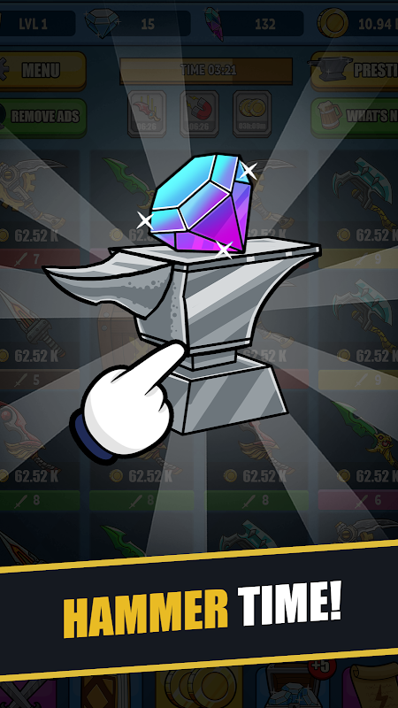 Verzamel meer dan 400 epische messen, samenvoegen en upgrade om uw idle-winst te maximaliseren!