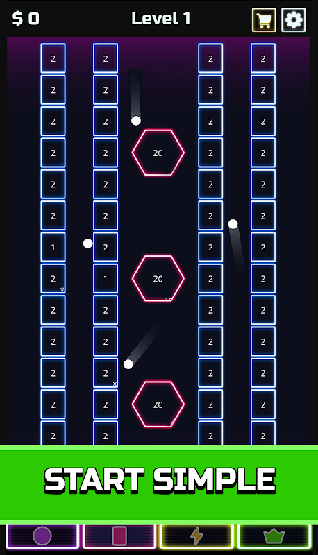 Breakout met een twist! Laat de ballen stenen breken terwijl je geld verdient