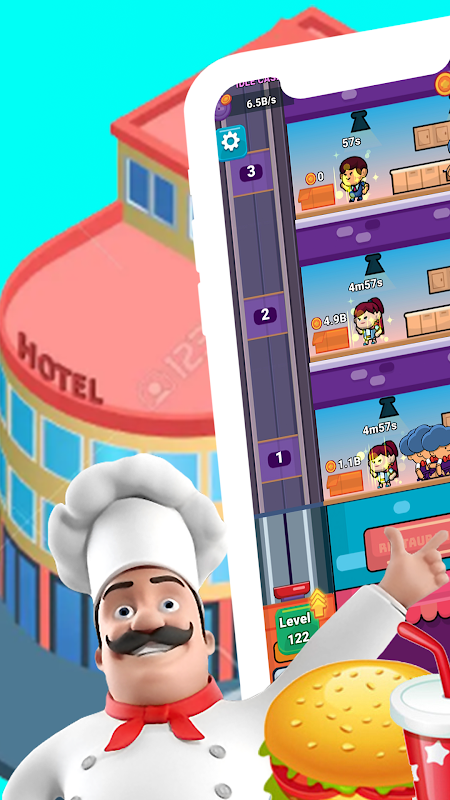 With Idle Hotel Business Tycoon is the best simulation game, you can become a Restaurant Tycoon, Factory Tycoon and a Cooking Restaurant. The game helps you manage your investment and save cash in a simple and interesting way. The special point of the game is to strategically build and optimize the factory and restaurant in order to make as little profit as possible