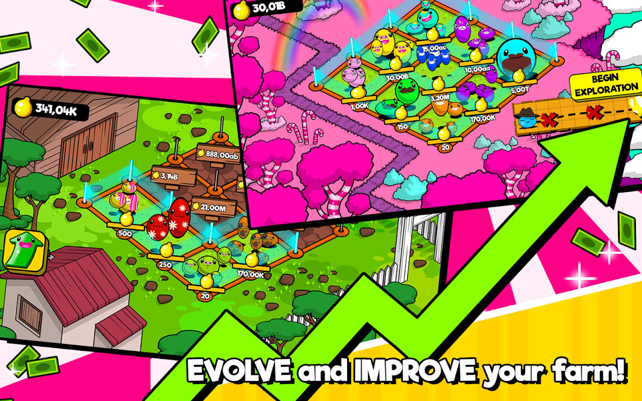 • Blijf niet op de boerderij! Stuur je wezens op verkenning naar mysterieuze landerijen in deze inactieve tycoon