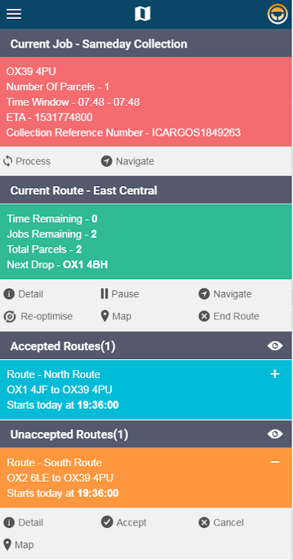 Driver tracking en route management voor instadispatch