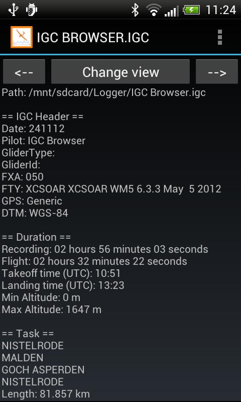 IGCBrowser searches for logger files on your SD card and allows you to look at the details of each individual flight.