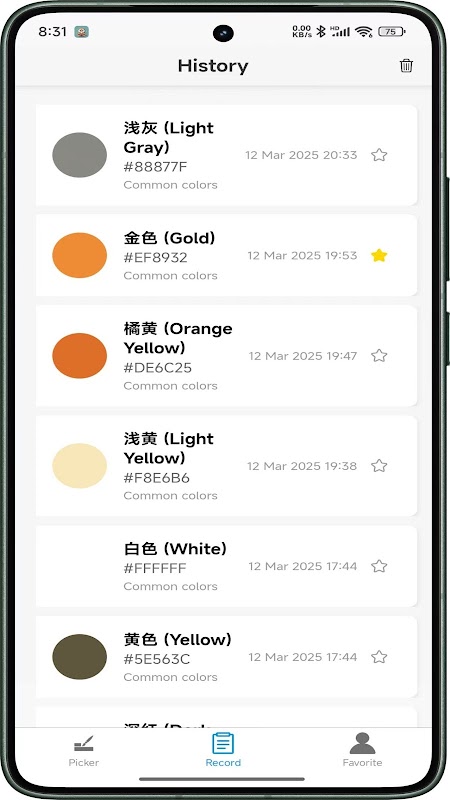 Kleurkiezer - een toepassing die wordt gebruikt om kleuren van camera's of afbeeldingen te herkennen. Identificeer kleuren uit meerdere kleurenpaletten. Dynamisch bereik. Veeg eenvoudig over het scherm om het bereik aan te passen. U kunt snel de kleur van het middelpunt of de gemiddelde kleur van het gehele geselecteerde gebied identificeren. Als er een cirkel wordt geselecteerd, is deze feitelijk gebaseerd op de pixelkleur die overeenkomt met het kruispunt in het midden van de cirkel. Bekijk wetenschappelijke kleurgegevens. Klik op de knop 'Details bekijken' om de expertmodus te openen. Het toont de kleurtemperatuur (Kelvin-graden), kleurposities in het spectrum, kleurwaarden van verschillende kleurmodellen (RGB, CMYK, HSV, enz.) en de mate van kleurmatching (percentage) van de meest vergelijkbare kleur in het geselecteerde kleurenpalet. Identificeer kleuren in de afbeelding. Open de afbeelding en herken/sla de gewenste kleur op in een willekeurig deel van de afbeelding. Gebruik opgeslagen kleuren. U kunt de opgeslagen kleuren bewerken. Zoek en blader door kleuren in de database. Door te zoeken op hexadecimale waarde of kleurnaam vindt u snel de gewenste kleur in de database. U kunt elke tekst naar de toepassing sturen om de database te doorzoeken via het systeemdialoogvenster "Delen". Disclaimers Vanwege de kleurweergave kunnen kleurstalen aanzienlijke verschillen vertonen met het origineel. Alle kleuren zijn alleen ter referentie. Gebruik deze waarden niet op plaatsen waar een uiterst nauwkeurige kleurafstemming vereist is. De afbeeldingen in de schermafbeelding zijn gegenereerd door AI.