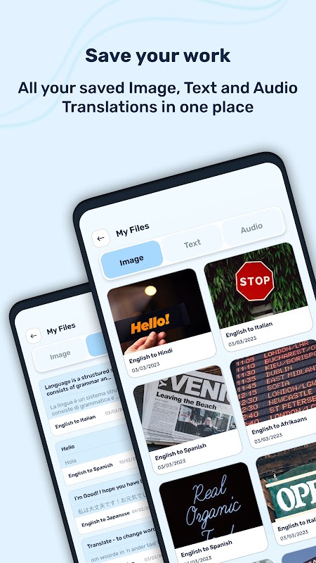 - Toegang tot al uw vertaalde afbeeldingen en tekst op één plek.