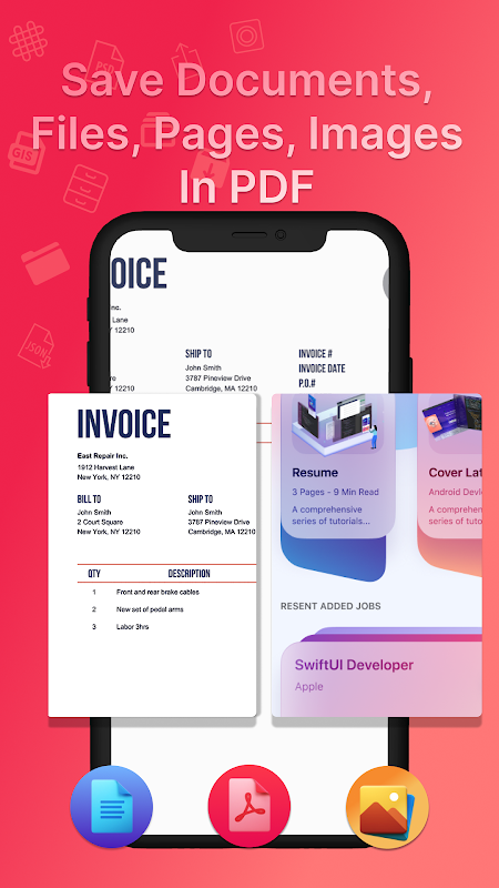 convert Image to text, Scan paper documents, Tax, Invoices, IDs save to PDF, JPG