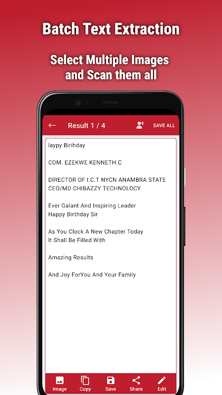 • Bewerken, delen en kopiëren – Bewerk, deel en kopieer de geëxtraheerde tekst eenvoudig binnen de app.