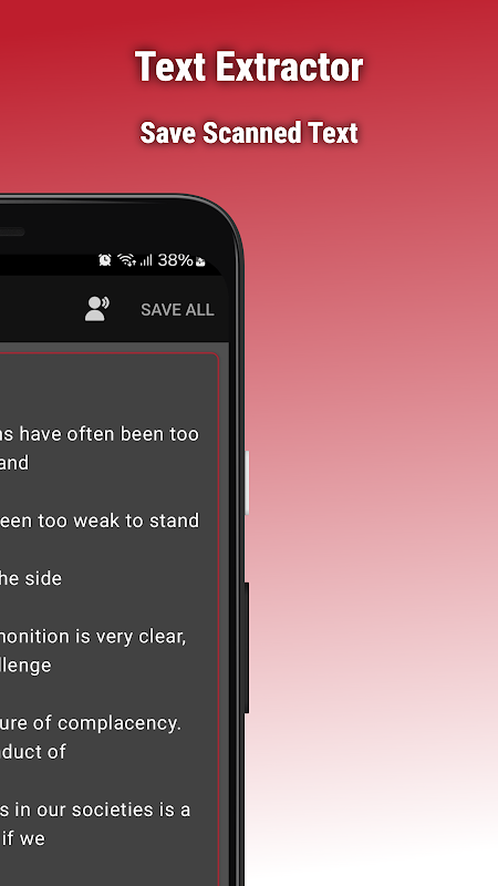 Realtime tekstextractie – Gebruik de camera van uw apparaat om tekst direct vast te leggen en te extraheren. U hoeft alleen maar de geëxtraheerde tekst aan te wijzen, vast te leggen en op te slaan of te delen, rechtstreeks vanuit de app.
