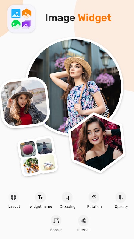 Afbeeldingswidget voor uw startscherm met verschillende indelingsstijlen en vormen.