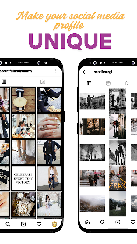 Behoud de traditionele witte Instagram-rand, of gebruik een van onze meer dan 100 themarandpakketten om een persoonlijk tintje toe te voegen aan elk bericht op sociale media.