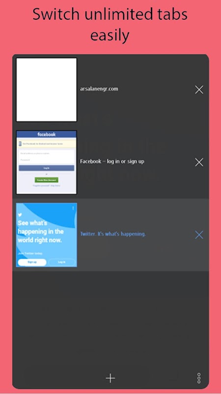 • Unlimited tabs - Multi tasking with download private browser now you can access unlimited number of tabs without any lag or crash with best user interface.