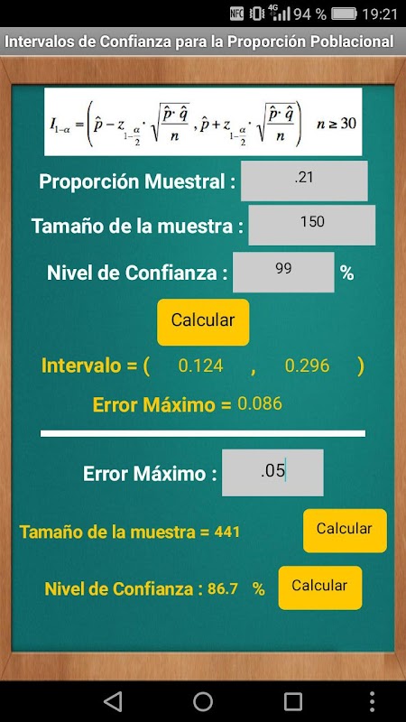 Hiermee berekeningen voor de normale verdeling, vind betrouwbaarheidsintervallen voor de bevolking betekenen, verhouding en de steekproefomvang en het vertrouwen niveau voor een bepaalde maximaal toelaatbare fout te verkrijgen.