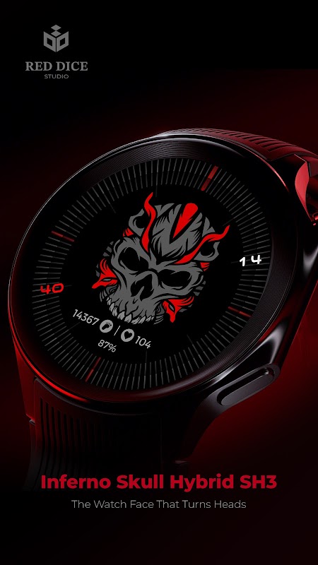 Dynamische digitale wijzers, een vurig schedelontwerp en Always-On Display (AOD)-modus.
