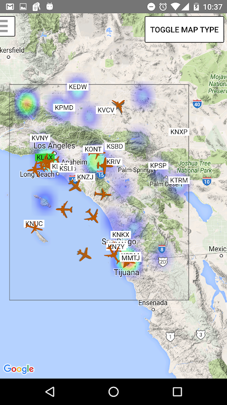 - Weather overlay: A colored map overlay showing the windiest airports on the map.