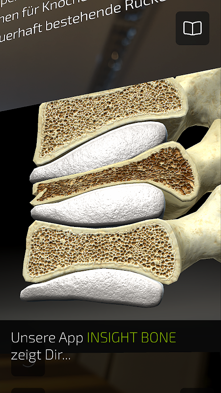 De augmented reality-app INSIGHT BONE laat zien wat normaal verborgen is: ons skelet en onze botten. Visueel indrukwekkend en wetenschappelijk onderbouwd komen de door osteoporose aangetaste structuren in het lichaam aan het licht.