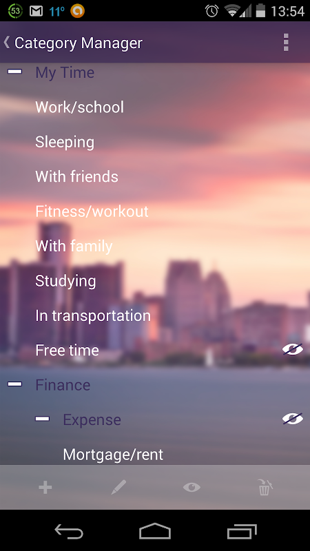 My Time, mijn financiën en My Mood - Toepassing gebruiker kan zijn gevoelens en gedachten, evenals gebeurtenissen en handelingen, waarin hij in had deelgenomen, door middel van drie categorieën op te nemen.