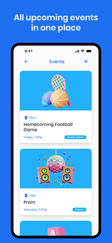 - Clublijst met gedetailleerde beschrijvingen, vergadertijden en herinneringen, contactinformatie en filter op categorie