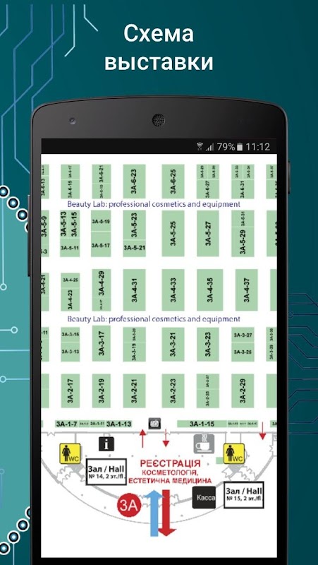 Открыв раздел "План выставки", Вы увидите схему экспозиции, на которой отмечены все участники с номерами стендов.