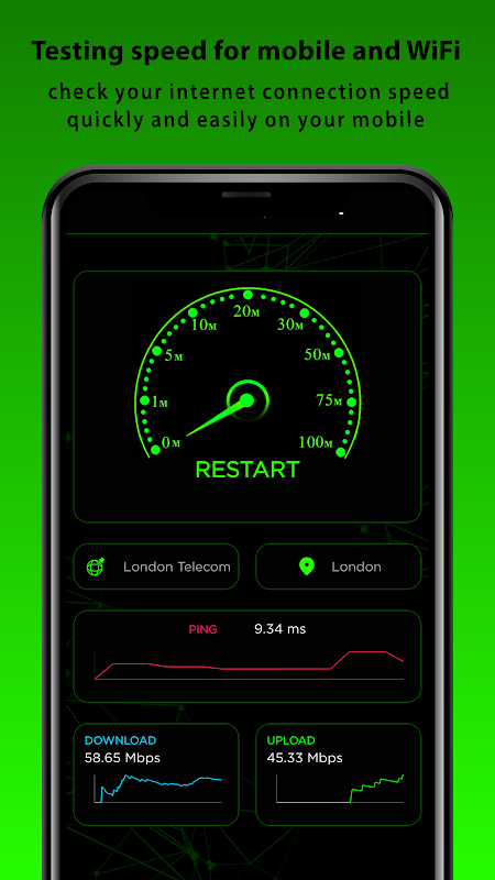 ✓ Test the ping, download and upload speed of WiFi hotspots on dsl, adsl, cable connections.