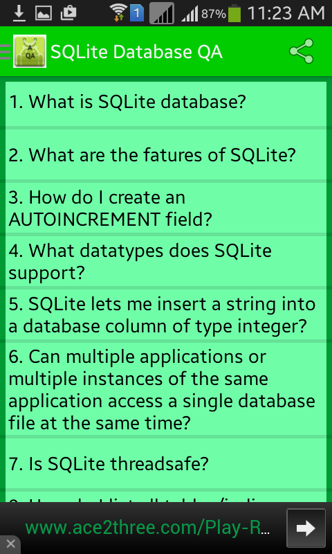 App will helpful for fresher and experience candidate who are looking for job or job change. It also includes more than 30 SQLite database, 466 Java, 139 SQL and 141 Android questions.