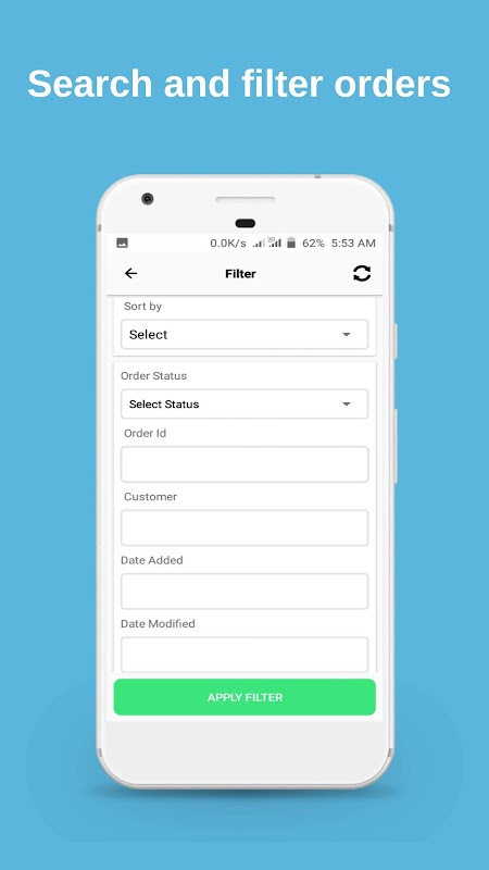 Scroll through, filter, or look up specific orders. Tap to view order information – including product(s), value, customer data, shipping details, and notes.
