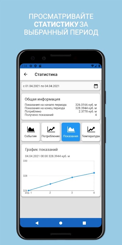 - Ontvang statistische gegevens voor de geselecteerde periode in grafiekformaat