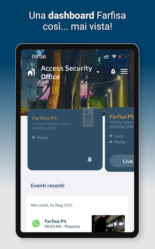 IP EVO is het nieuwe geavanceerde cloudsysteem waarmee u video-intercomoproepen van het Farfisa IP EVO-systeem kunt ontvangen.
