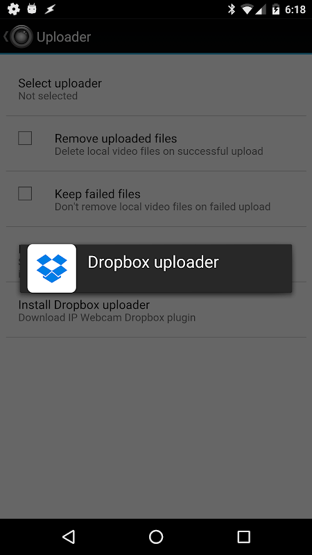 IP Webcam uploader uploads files from local filesystem to Dropbox.