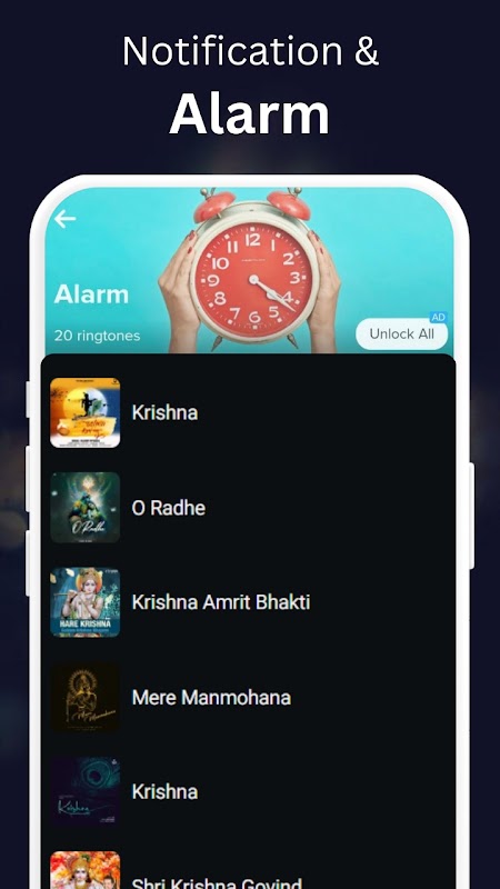 U kunt ze met slechts één klik afspelen en instellen als uw standaard beltoon, melding, alarm of instellen als beltoon voor contactpersonen. Deel ook rechtstreeks vanuit deze app. Krishna Ringtone is het beste voor jou, vind nergens waar deze app een speciale verzameling All Krishna Ringtone biedt.