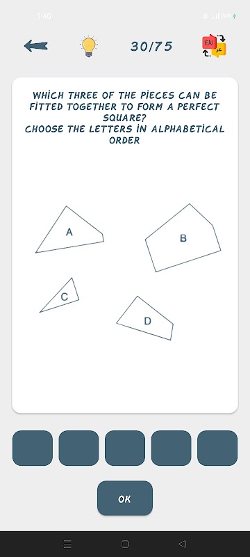 Dit spel bestaat uit 5 niveaus, elk niveau 15 vragen.