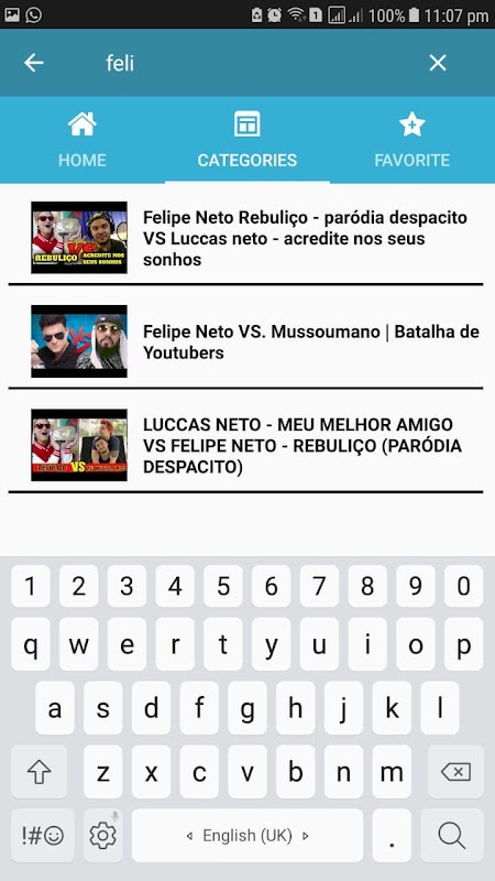 * Multi-Categories for this app like lucas neto , Irmãos Neto , felipeneto , dumbo dumbo , Thayane Lima ,